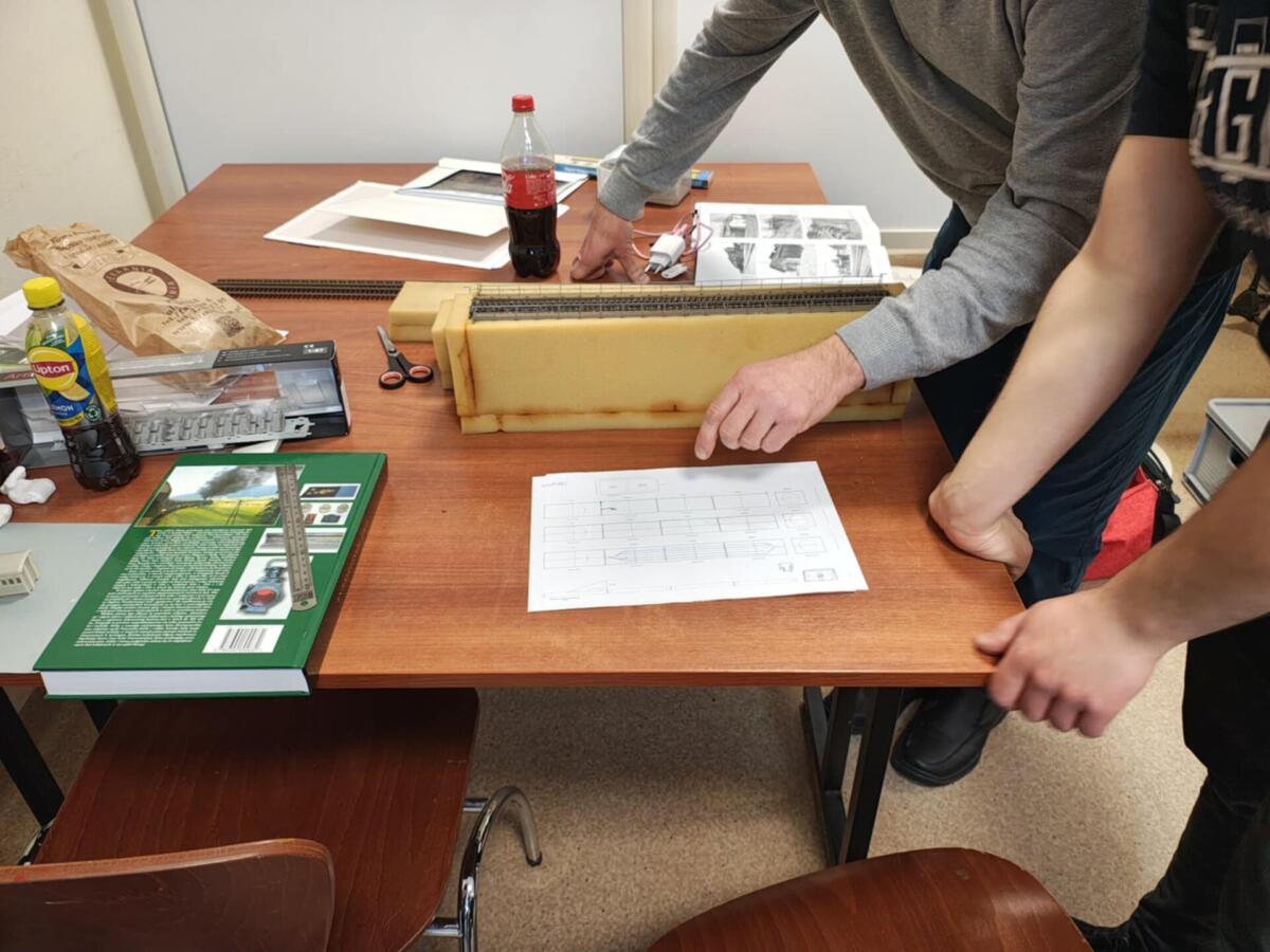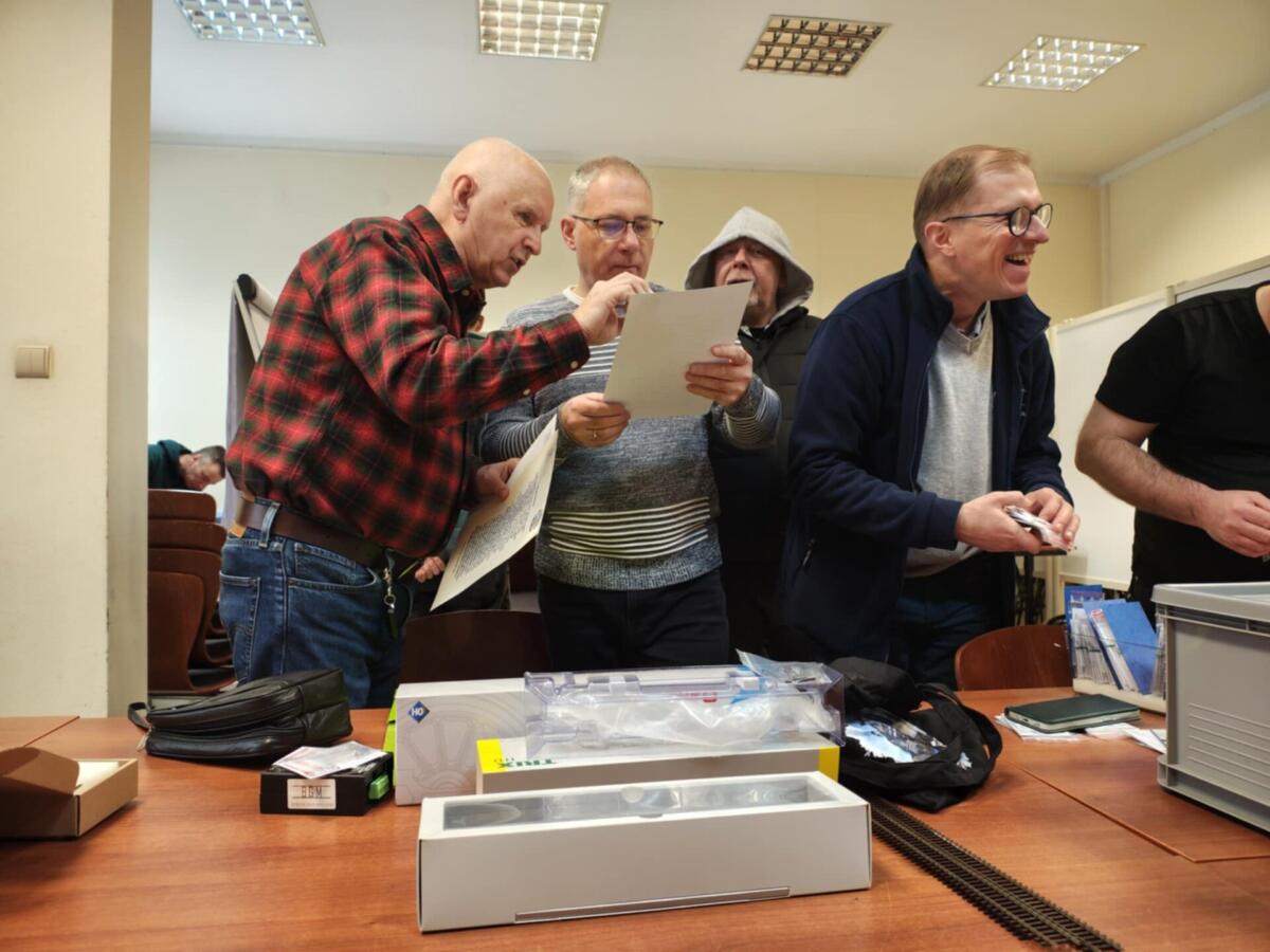 Nowy kolega Aleks przyniósł części wagonu i na spotkaniu działał przy jego budowie. Inni też pracowali przy swoich modelach.