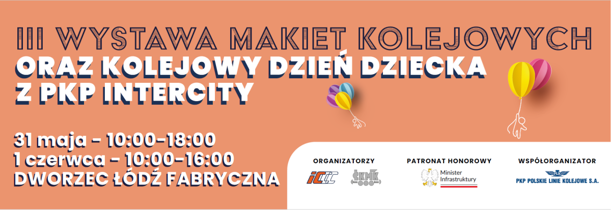 III Wystawa Makiet Kolejowych oraz kolejowy Dzień Dziecka z PKP Intercity 31 maja - 1 czerwca 2025 Dworzec Łódź Fabryczna