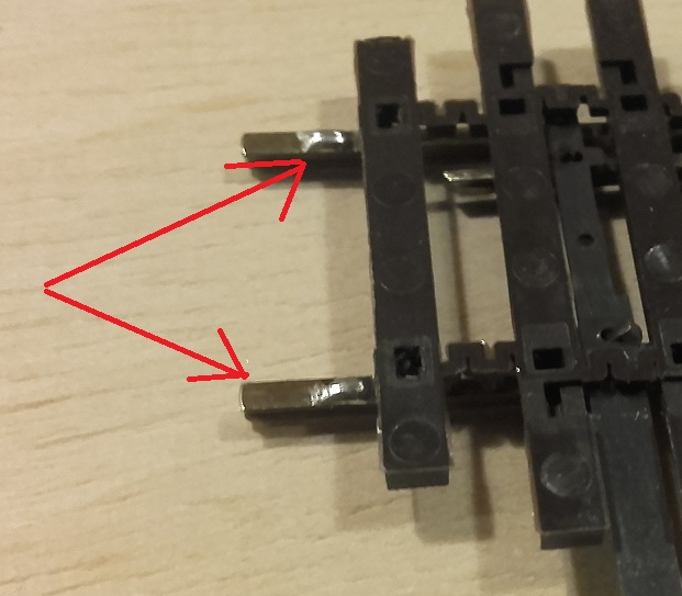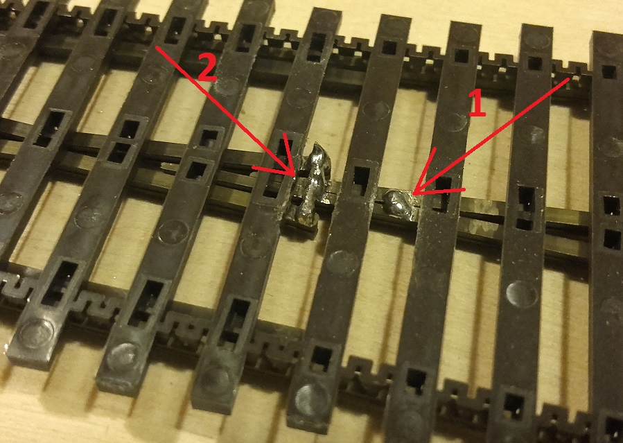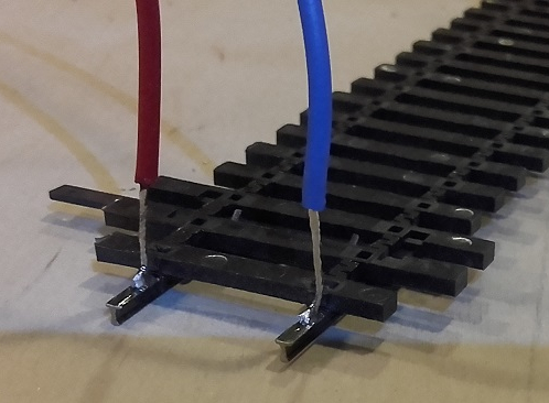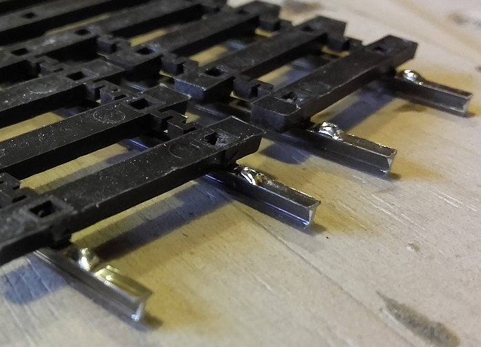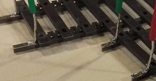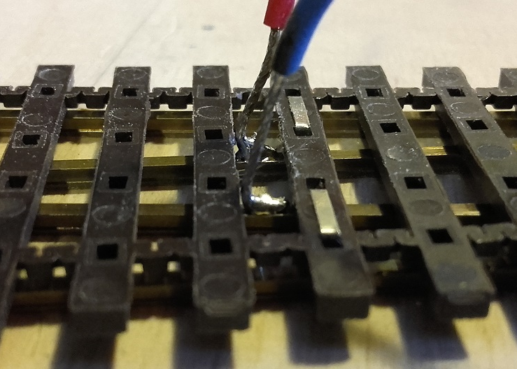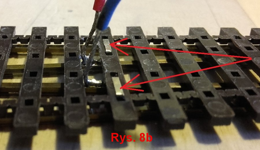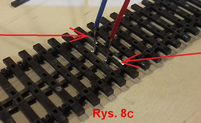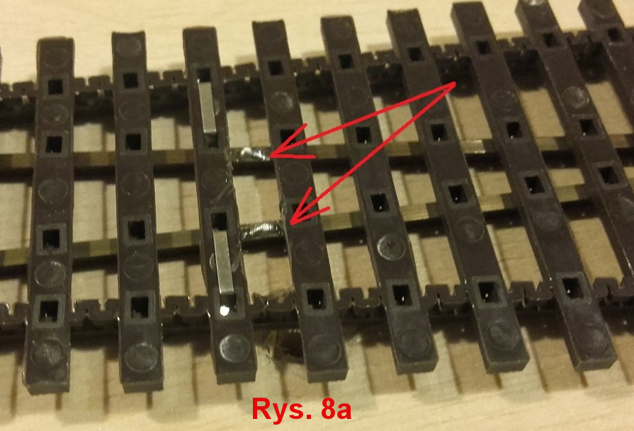 ale dla pewności lepiej dać dwa. Zewnętrzne szyny lutujemy jak zwykłe tory.
