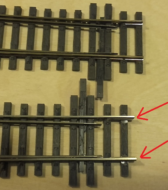 W przypadku gdy decydujemy się przyciąć długości rozjazdu konieczne jest przylutowanie szyn przy krzyżownicy (najlepiej zrobić to zawsze),