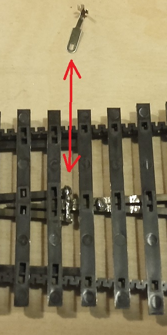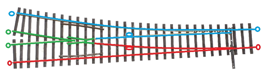 W zwrotnicach Tillig-a polaryzowane są całe środkowe szyny oznaczone na zielono (rys.6) za pomocą blaszki (rys.4), Można przylutować tylko jeden zielony kabelek,